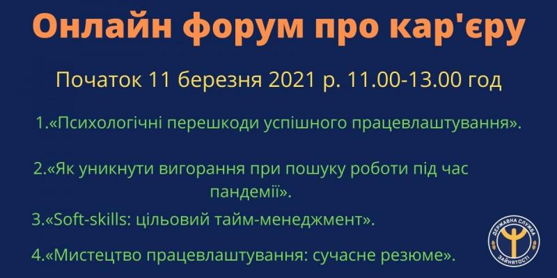 Старт у березні "Онлайн форум про кар'єру 2021"